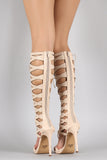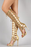 This bold heel features a cage-like silhouette, open toe, wrapped stiletto heel, and lace up design. Finished with stitching accents, lightly padded insole, and rear zipper closure for easy on/off.