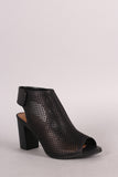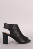 This stylish heel features a peep toe silhouette, perforated detail, back cutout design, hook & loop strap closure, chunky stacked heel, and lightly padded insole for comfort.
