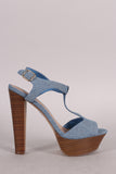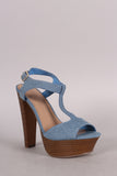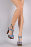 This peep toe heel features a peep toe silhouette, t-strap construction connected to an adjustable ankle strap closure, stacked platform, and thick heel. Finished with lightly padded insole for comfort.