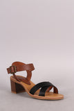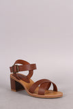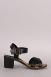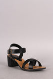 This open toe heel is on a low chunky heel. Designed with two crossing straps on the toe box and an adjustable ankle strap.