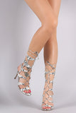 This edgy lace up closure, and wrapped stiletto heel. Finished with a lightly padded insole, and side zipper closure.