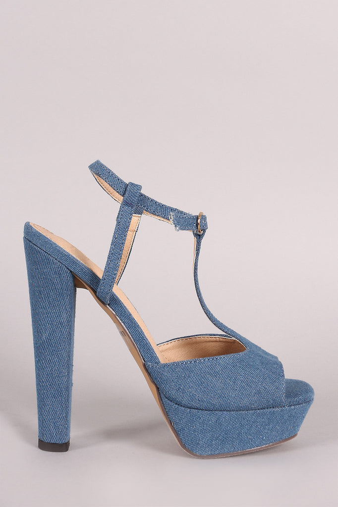 This stylish heel features a denim fabrication throughout, t-strap construction, open toe silhoutte, and wrapped chunky heel. Finished with a lightly padded insole for comfort and ankle wrap side buckle closure.
