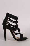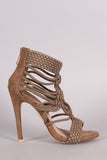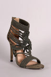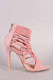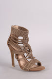 This open toe silhouette,featuring a caged drawstring crochet woven design. Finished with an adjustable rear back zipper.
