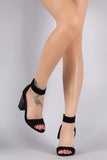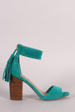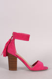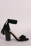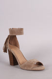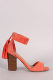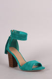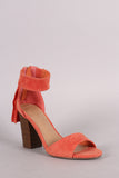 This fashion-forward chunky stacked heel . Finished with lightly padded insole and tassel back-zip closure.