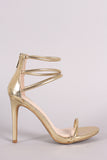 This simply gorgeous single sole , triple ankle straps, and wrapped stiletto heel. Finished with lightly padded insole and convenient back-zip closure.