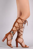 This lace-up front design, chunky faux wooden heel, and one band across vamp. Finished with lightly padded insole and back-zip closure.