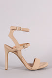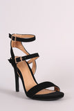 This fabulous heel features an open toe silhouette, one band across vamp, lightly padded insole, double ankle strap with buckle fastening, and wrapped stiletto heel.