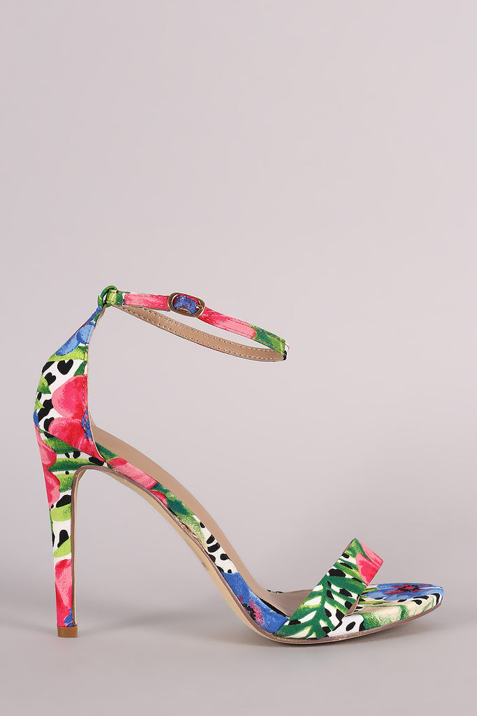 Floral Print Open Toe Stiletto Heel