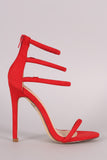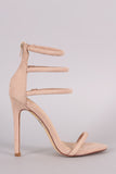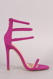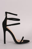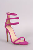 This alluring single sole , triple ankle straps, and wrapped stiletto heel. Finished with lightly padded insole and convenient back-zip closure.