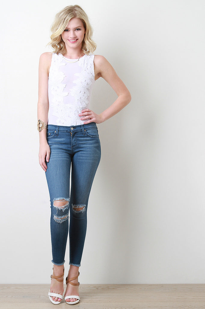 Knee Slit Skinny Pants