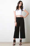 These culotte style pants features a high waisted design, button d�cor accent on faux pockets, a hidden zipper fastener on side. Accessories sold separately. 100% Polyester.