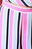These striped high waist pants feature a relaxed fit, wide legs, and an invisible side zipper. Accessories sold separately. 52% Rayon 48% Viscose.