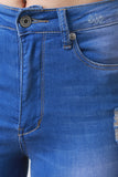 These denim pants feature light washed distressed front design, high waisted, belt loops, classic 5-pocket, and single button with zip fly closure. Accessories sold separately. 98% Cotton, 2% Spandex.