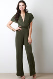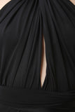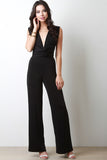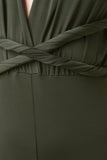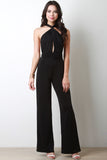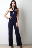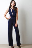 This jumpsuit features a multiple wrap convertible design, high waisted elasticized cinched waist, and wide leg pants. Accessories sold separately. 94% Polyester, 6% Spandex.