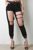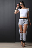 These comfy pants feature a soft jersey knit fabrication, elasticized waist band with self-tie drawstrings, two front pockets, and cuffed ends. Accessories sold separately. Made in U.S.A. 35% Cotton, 65% Polyester, 5% Spandex.
