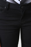 This edgy jeans feature a stretch denim fabrication, classic 5-pocket style, zipper fly and single button closure, patch knee detail with top stitching, skinny jean fit. Accessories sold separately. 52% Cotton, 21% Viscose, 25% Polyester, 2% Spandex.