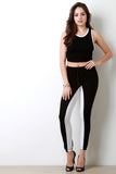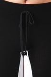 These jogger pants feature a jersey knit fabrication with two-tone constrasting color design, and wide elasticized waist band with faux self-tie woven drawstrings. Finished with an elasticized cuffed hemline. Accessories sold separately. Made in U.S.A. 48% Rayon, 48% Polyester, 4% Spandex.