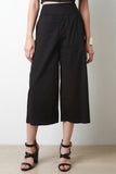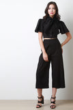These cropped pants features a woven fabrication, high waist, gathered detail, covered back zipper closure, and a wide cut leg. Accessories sold separately. 92% Cotton, 8% Spandex.