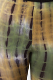 These pants features tie dye print on stretchy jersey knit fabrication, high waisted elasticized band, and bell bottom cut fit. Accessories sold separately. Made in U.S.A. 100% Rayon. Contrast: 95% Rayon, 5% Spandex.