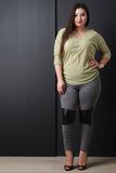 This plus size marled knit top features a round neckline, three quarter dolman sleeves design, and side cinched details. Top comes with a long geometric cutout pendant necklace with a curb chain tassel. Other accessories sold separately. 88% Rayon, 12% Polyester.