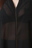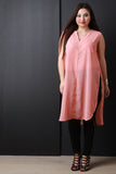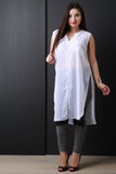 This plus size tunic top features a half placket v-neckline, sleeveless construction, microbeads trims, left chest pocket, and deep side slits. Accessories sold separately. 100% Polyester.
