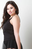 This plus size sleeveless top features a jersey knit fabrication, cutaway design, spaghetti shoulder straps, and racer back. Accessories sold separately. Made in U.S.A. 95% Cotton, 5% Spandex.