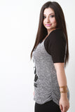 This plus size top features a soft knit fabrication, panda with "LOVE MUSIC" graphic print at front, round neckline, short sleeves design, and gathered material at sides. Accessories sold separately. 97% Rayon, 3% Spandex. Contrast: 49% Rayon, 47% Polyester, 4% Spandex.