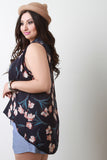 This beautiful  floral  print chiffon fabrication, spread collar design, sleeveless construction, button up front, and high-low hemline. Accessories sold separately. Made in U.S.A. 100% Polyester.