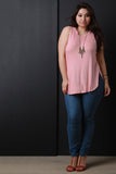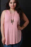 This plus size top features a ribbed knit fabrication, round neckline and sleeveless construction. Finished with side slits and a rounded hemline. Accessories sold separately. 97% Rayon, 3% Spandex.