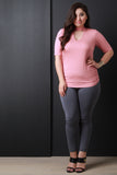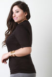 This plus size top features a mock neckline with keyhole cutout detail at front, elbow sleeve, and side ruched detail. Accessories sold separately. Made in U.S.A. 97% Rayon, 3% Spandex.