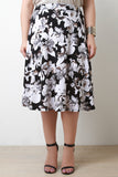 This skirt features a beautiful floral print througout, high wasted wide panel, smooth stretchy flowy knit fabrication, and midi length hemline. Accessories sold separately. Made in U.S.A. 96% Polyester, 4% Spandex.