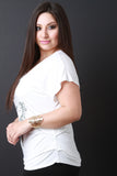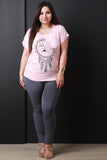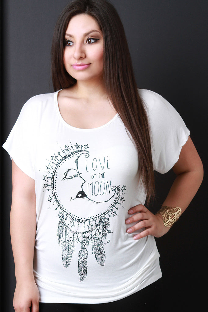 This plus size graphic tee features soft knit fabrication, round neckline, short sleeve construction , Moon graphics that reads"Love By The Moon" and pleated sides. Accessories sold separately. 97% Rayon, 3% Spandex.