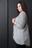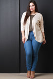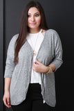 This plus size cardigan features soft melange knit, open front, drop shoulders, and 3/4 length sleeves. Accessories sold separately. 88% Rayon, 12% Polyester.