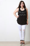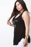 This plus size top features a " Everything Will Be Okay In The End. If It's Not Okay, It's Not The End." graphic print, racer back tank top design, scoop neckline and a flare rounded hem line. Accessories sold separately. 97% Rayon 3% Spandex.