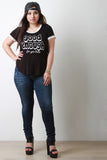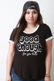 This plus size top features a "Good enough for you babe" graphic print in front, constrasting round neckline and short sleeves, and rounded slight high low hemline. Accessories sold separately. Made in U.S.A. 97% Rayon, 3% Spandex.