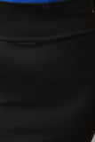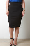This plus size pencil skirt features a high waisted design with a wide panel seam, midi length hemline with a vent slit back, and a stretchy sculpture fit. Accessories sold separately. Made in U.S.A. 96% Polyester, 4% Spandex.