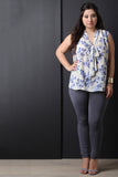 This plus size top features floral print, v-neckline with self-tie bow, pleated shoulders, and relaxed fit. Accessories sold separately. Made in U.S.A. 100% Polyester.