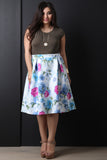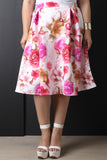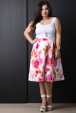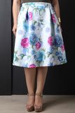 This  plus size skirt  features smooth stretch knit, floral print, pleated design, and a-line cut. Accessories sold separately. Made in U.S.A.