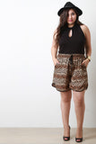 These plus size shorts features a high waisted elasticized band, drawstring d�cor, contrasting trimming, and leopard pattern print. Accessories sold separately. Made in U.S.A. 100% Polyester.