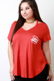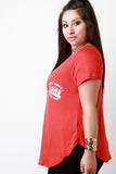 This cutesy plus size top features a jersey knit fabric, "Just wanna be loved forever and ever" print detail, cold shoulder design, and short sleeves fit. Finished with a rounded hemline and relaxed fit. Accessories sold separately. Made in U.S.A. 95% Rayon, 5% Spandex.