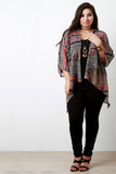 This plus size cardigan features a boho paisley-printed chiffon fabrication, open-front design, dolman sleeves, and asymmetrical hemline. Accessories sold separately. Made in U.S.A. 100% Polyester.