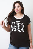 This plus size tee features a soft jersey knit with contrast trim, LOVE PANDAS graphic print at front, round neckline, and short sleeves. Finished with a rounded hemline. Accessories sold separately. 97% Rayon, 3% Spandex.