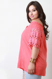 Eyelet Trim V Neck Tee