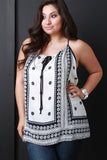 This plus size top is trapeze silhouette and relaxed cut. Sleeveless and scoop neckline design. Semi-sheer. Unlined. Floral print throughout. Accessories sold separately. 100% Polyester.