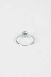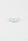 High polished metal ring featuring a circle that is half rhinestone half colored stone on a non-adjustable band.