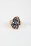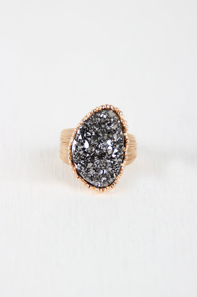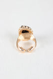 This ring features a glittering encrusted rhinestones design, and gathered wire body with open ended band. Non-adjustable.