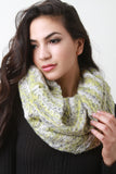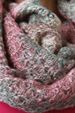 This heavy cozy scarf features a condo knit fabrication along with an infinity construction with a braid closure.