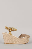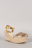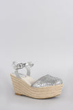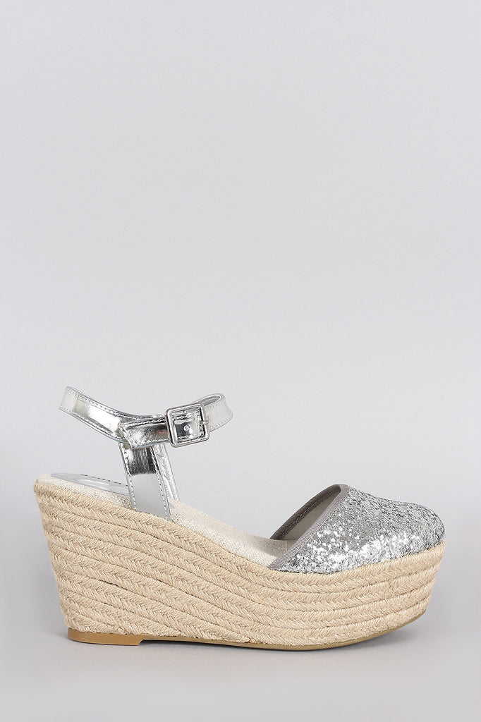 Give your feet a treat with this cute platform wedge ! Featuring round toe with sparkling glitter accent, espadrille platform, and wedge heel. Finished with lightly padded insole and adjustable ankle strap with buckle closure.
