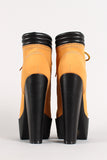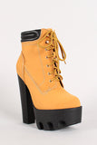 Featuring smooth nubuck upper, round toe, lug sole platform, lace up front, padded collar, chunky heel, stitching detail, and finished with cushioned insole for comfort.