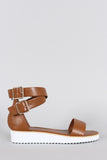 This open toe lug sole . Features two adjustable crossing ankle straps. Finished with an adjustable rear back zipper.